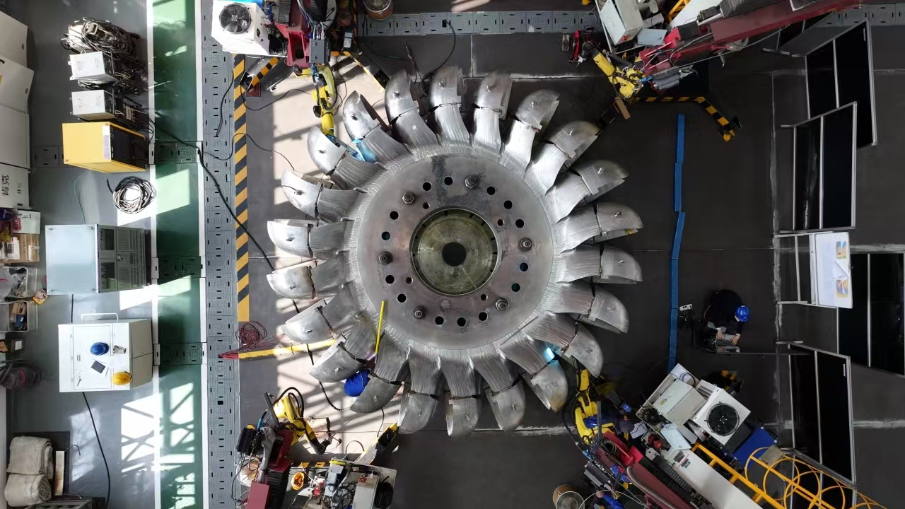 该转轮在行业内首次应用机器人焊接技术,实现了外部水斗与中心体的组焊,大幅提升了冲击式转轮的焊接质量和效率,为后续高水头大容量冲击式水电机组转轮规模化生产提供了技术基础。