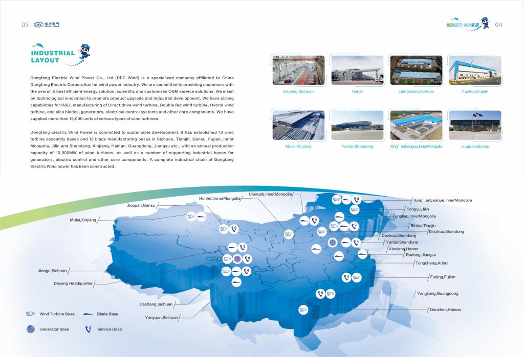Dongfang Electric Wind Power Co., Ltd. (DEC Wind) is a specialized company affiliated with China Dongfang Electric Corporation, focused on the wind power industry. We are dedicated to providing customers with comprehensive, high-efficiency energy solutions, along with scientific and customized operation and maintenance services. Driven by technological innovation, we continuously promote product upgrades and industry development. Our strong capabilities encompass R&D and manufacturing for direct-drive, Double Fed, and hybrid wind turbines, as well as essential components like blades, generators, and electrical control systems. To date, we have supplied over 15,000 units of various wind turbine types.