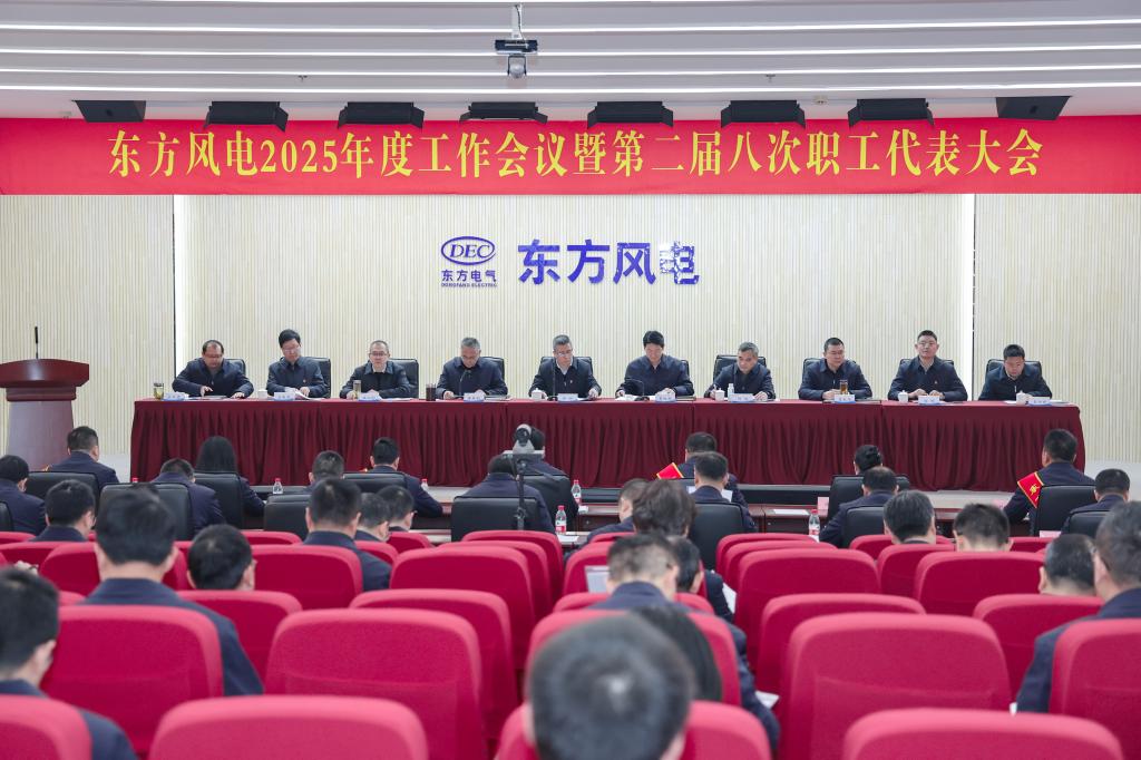1月18日,东方风电召开2025年度工作会议暨二届八次职工代表大会。会议以习近平新时代中国特色社会主义思想为指导,全面贯彻落实党的二十大和二十届二中、三中全会精神,认真落实中央经济工作会议决策部署和集团公司年度工作会议要求,准确把握新时代新征程央企新使命、新定位,系统总结回顾2024年工作情况,研判当前经济形势,安排部署下一阶段重点工作,动员和带领广大干部职工锚定2025年公司各项目标任务,团结奋斗,助力企业高质量发展。